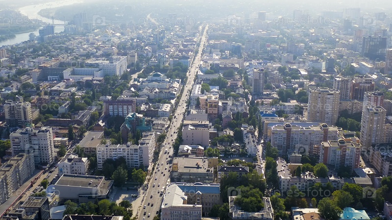 Панорама центральной части города в освещении, вид с воздуха