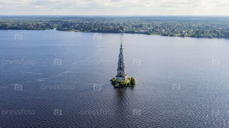 Колокольня собора Святого Николая (известная как затопленный колокол), вид с воздуха