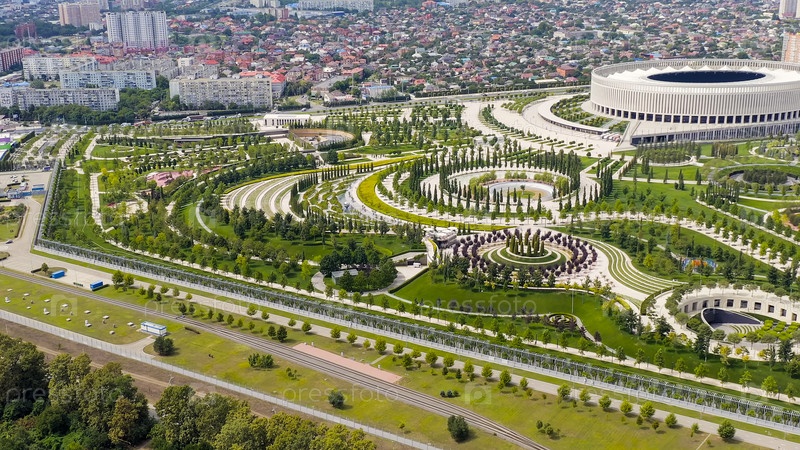 Краснодар, Россия. общественный парк краснодара (галисийский парк). летний вид с воздуха, Aerian View