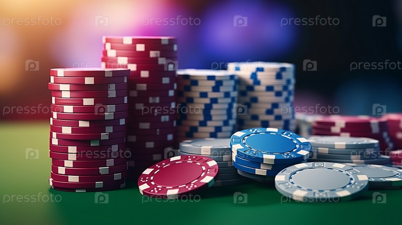 Покерные фишки на игровом столе с драматическим освещением