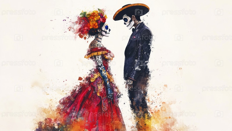 Традиционный мексиканский День мертвых отмечается яркими акварелями