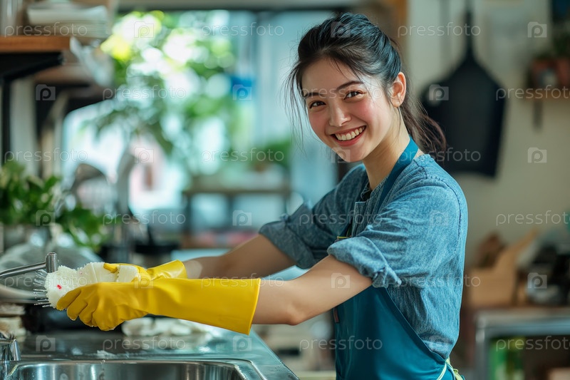 Эффективная стирка на солнечной кухне с зелеными акцентами