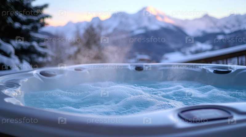 Роскошная горячая ванна с захватывающим видом на горы в стране зимних чудес