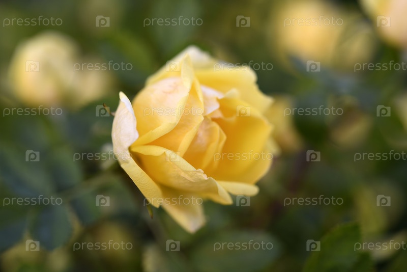 Желто-розовый куст, большой цветок желтой розы