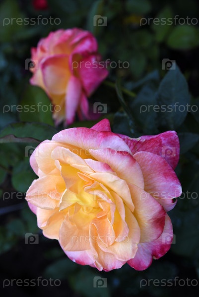 Розовые и желтые розы.Большая жёлтая роза.Цветок крупный план