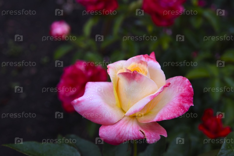 Розовые и желтые розы.Большая жёлтая роза.Цветок крупный план