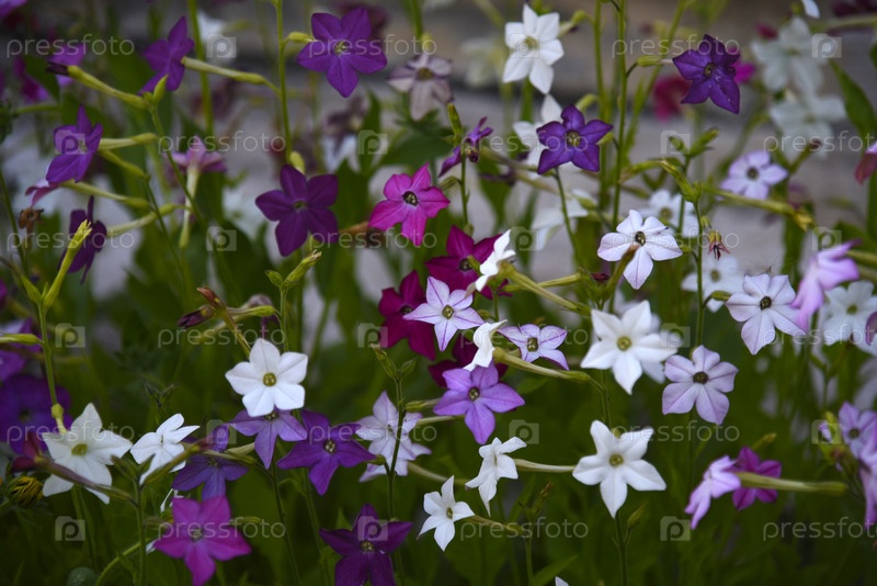 Красочные цветы декоративного табака. Nicotiana Alata. Садовый табак. Рассеянность цветов в саду