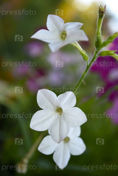 Красочные цветы декоративного табака. Nicotiana Alata. Садовый табак. Рассеянность цветов в саду