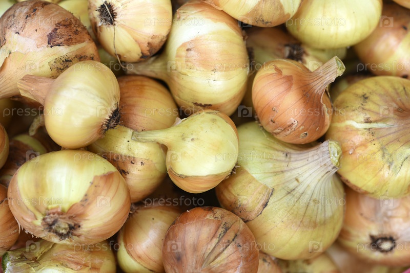Урожай свежих луков на фоне красивых и спелых луковиц