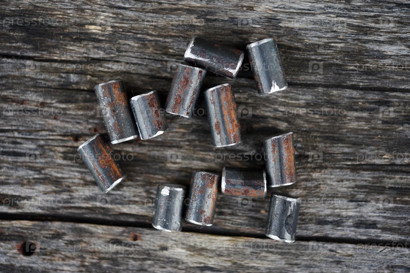 Металлические сегменты. разрезать металлическую фитингу. металлоломки на заднем плане