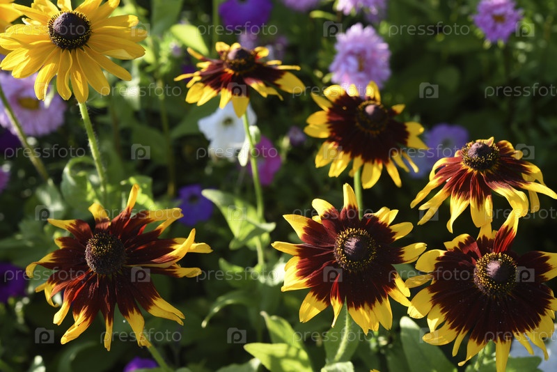 Желтый Рудбек цветет днем.Большие цветки в летнем саду.Летние желтые цветы