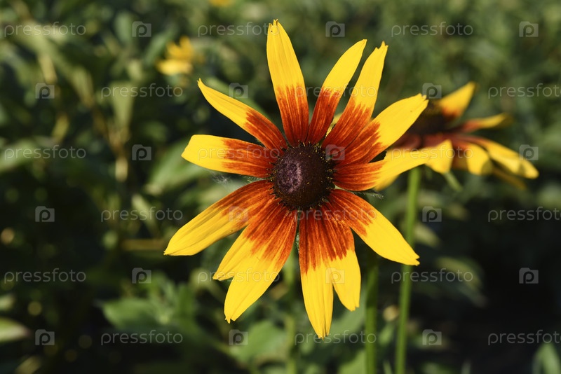 Желтый цветок Рудбек.Большие цветы в саду.Летние желтые цветки