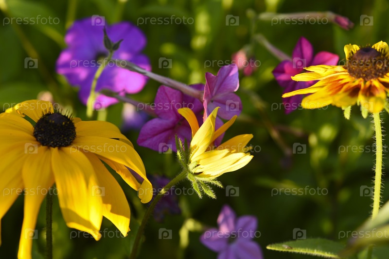 Желтый Рудбек цветет днем.Большие цветки в летнем саду.Летние желтые цветы