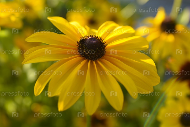 Желтый цветок Рудбек.Большие цветы в саду.Летние желтые цветки