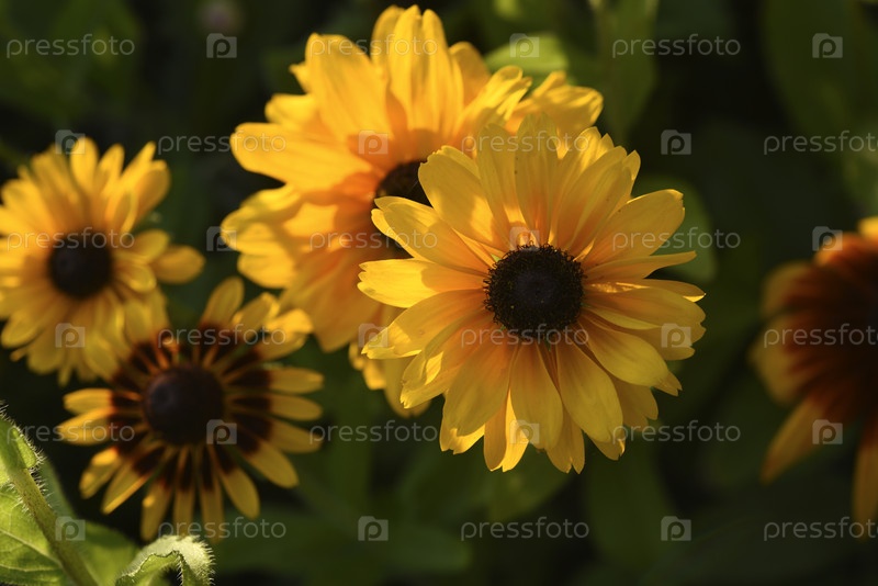 Желтый Рудбек цветет днем.Большие цветки в летнем саду.Летние желтые цветы