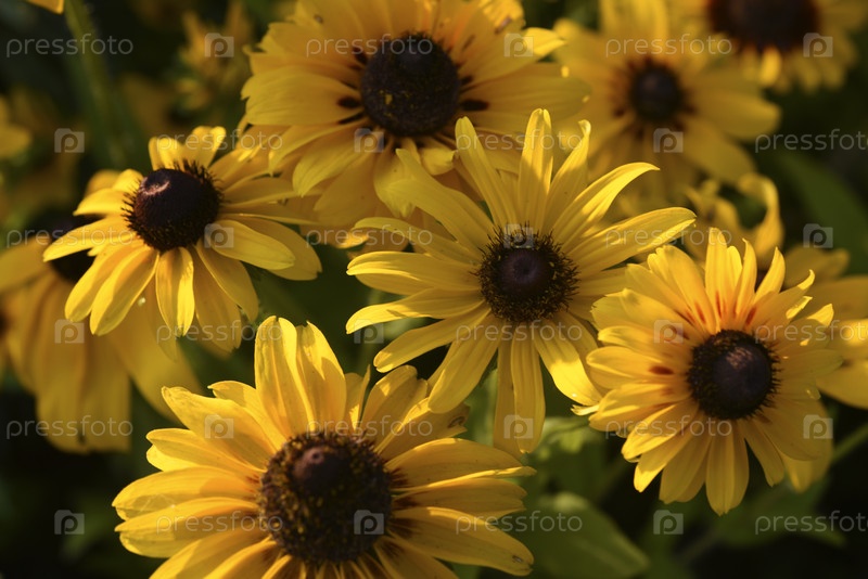 Желтый Рудбек цветет днем.Большие цветки в летнем саду.Летние желтые цветы