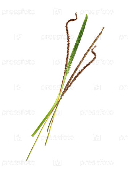 Зеленый шип цветущего плантана, изолированный на белом фоне