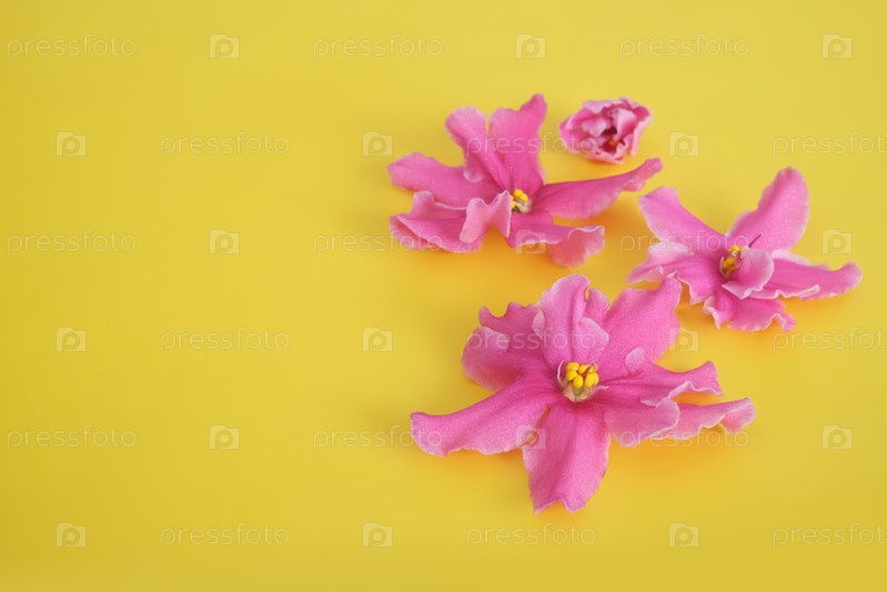 Близкий план фиолетового цветка, изолированного на желтом фоне