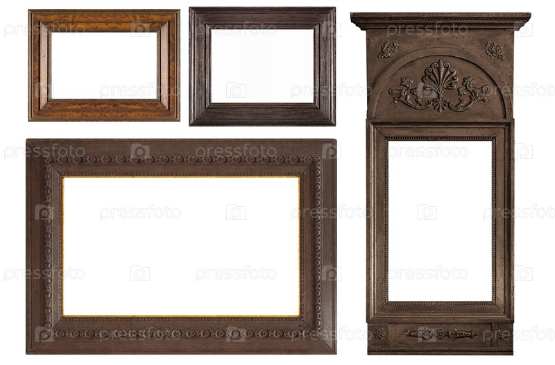 Набор деревянных рамок для картин, зеркал или фотографий, изолированных на белом фоне