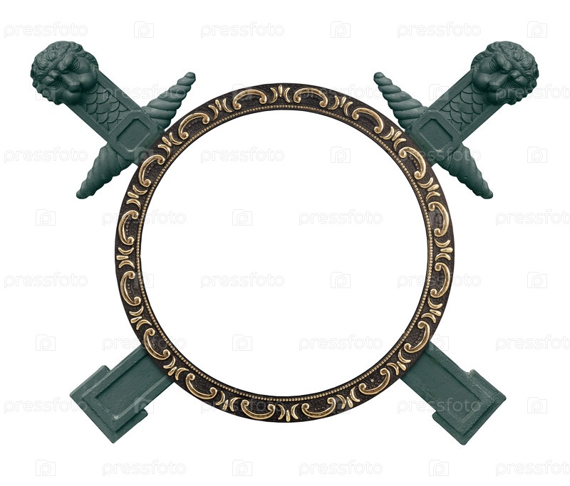 Бронзовый декоративный элемент выделен на белом фоне: голова мифического монстра