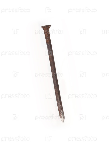 Старый ржавый ноготь, изолированный на белом фоне