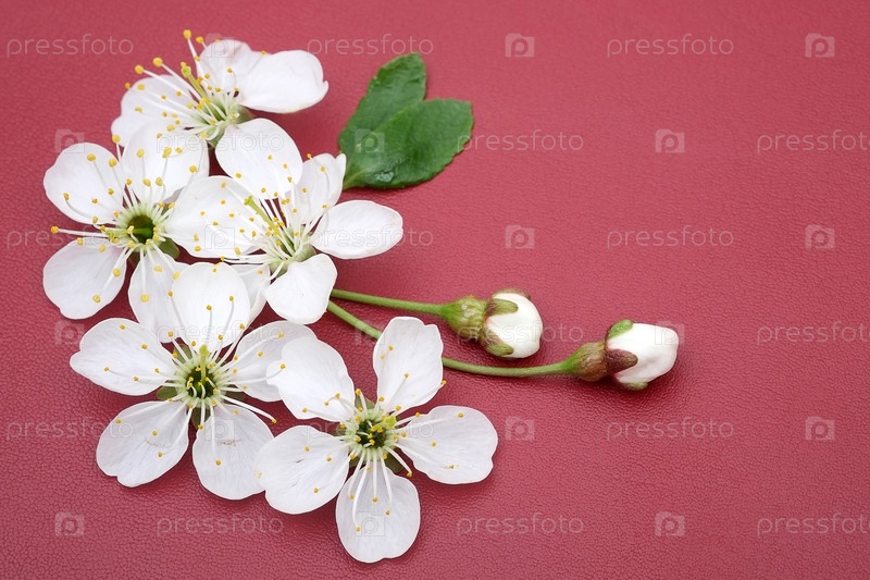 Цветы вишневых деревьев (сакуры) изолированы на красном фоне