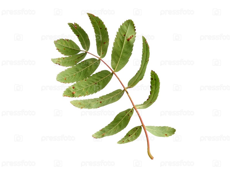 Макро из сложного листа рована с красноватым стеблем, выделенным на белом фоне, резка готова. очень высокое разрешение