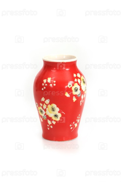 Китайская или японская ваза в древних традициях изолирована на белом фоне