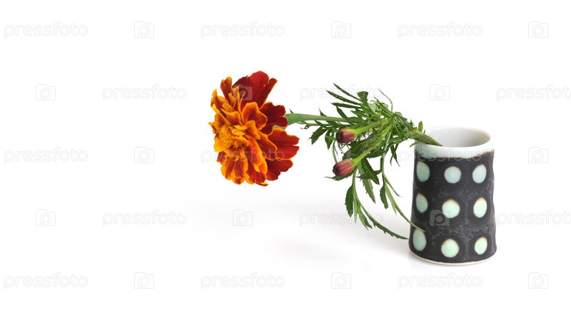 Один натуральный красный цветок ромашки в вазе, изолированной на белом фоне