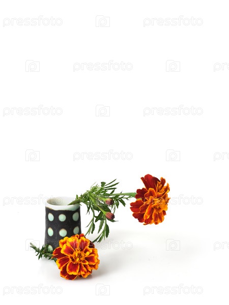 Два натуральных красных цветка вазы выделены на белом фоне