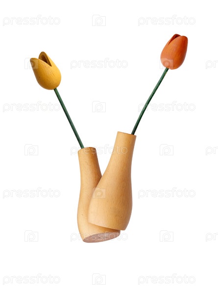 Сувенирный деревянный букет тюльпанов из Голландии, изолированный на белом фоне