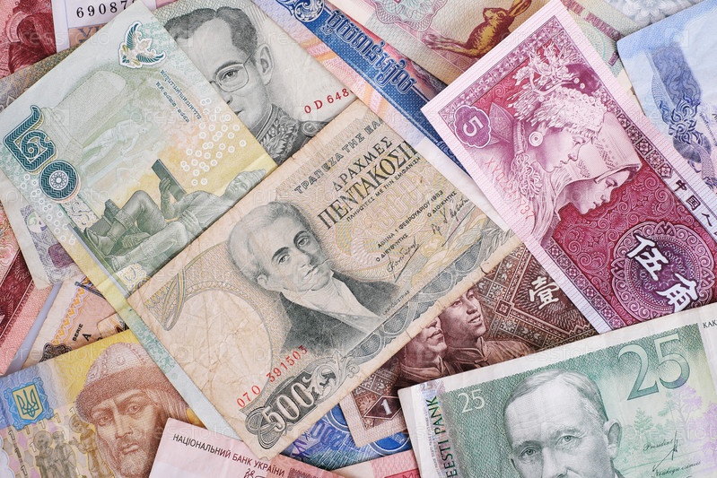Банкноты разных стран изолированы на белом фоне