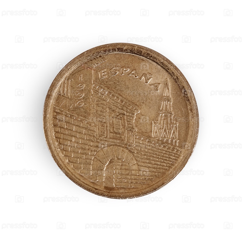 Монета номиналом 5 песет.Испанская надпись на ней означает Спания по-английски.Элемент дизайна с подстриженной дорожкой
