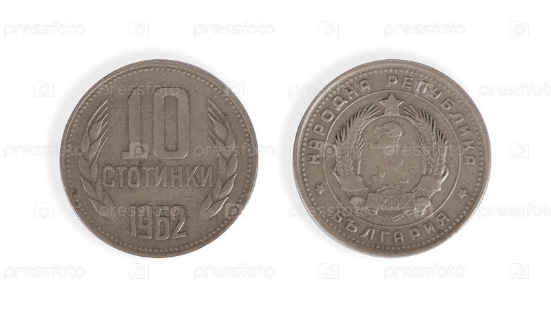 Болгарская монета 10 стотинки. Булярная надпись означает 'Народная Республика Болгария' на английском языке