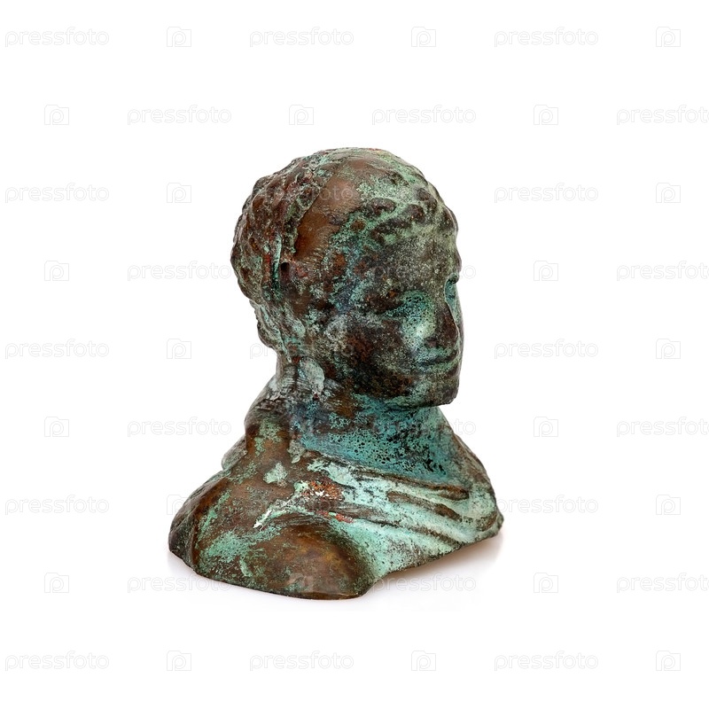 Древнегреческий бронзовый бюст молодого человека, изолированный на белом фоне