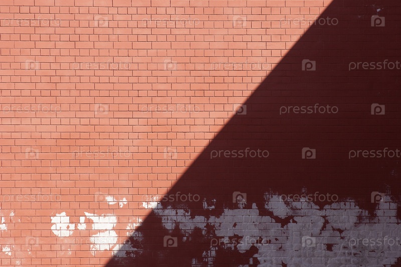 Красная кирпичная стена разделена светом и тенью по диагонали