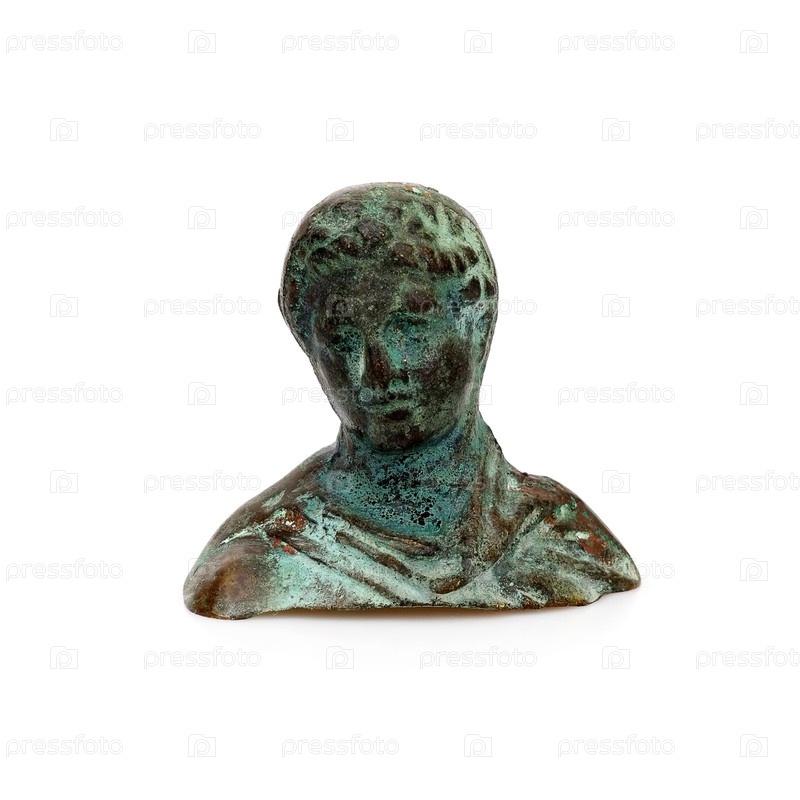Древнегреческий бронзовый бюст молодого человека, изолированный на белом фоне