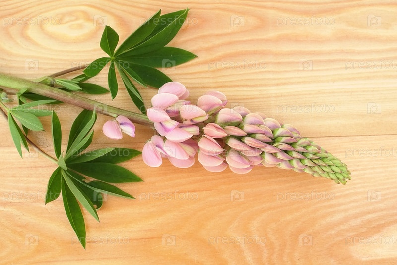 Лупинские цветы изолированы на деревянном столе