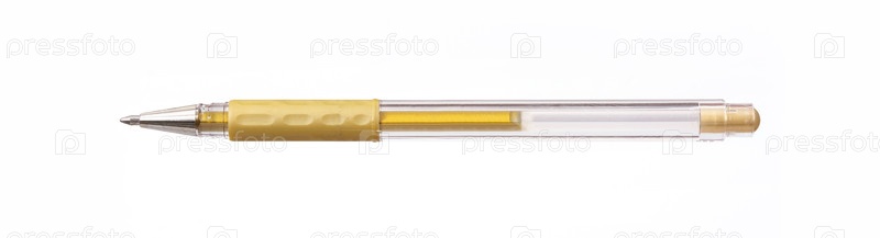 Золотая шариковая ручка без колпачки изолирована на белом фоне