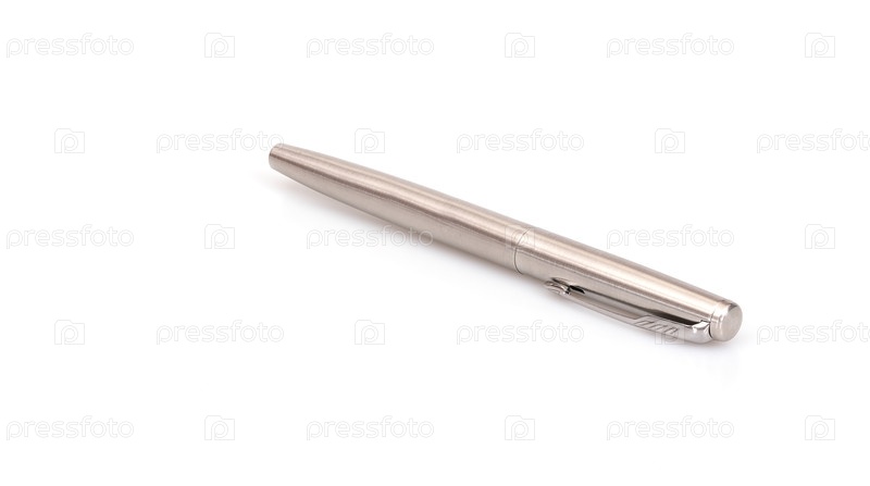 Серебряная шариковая ручка изолирована на белом фоне