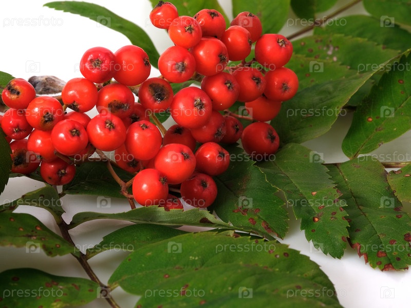 Ветвь горного пепла с ярко-красными ягодами и зелеными листьями изолирована на белом фоне для дизайна плаката или поздравительной открытки