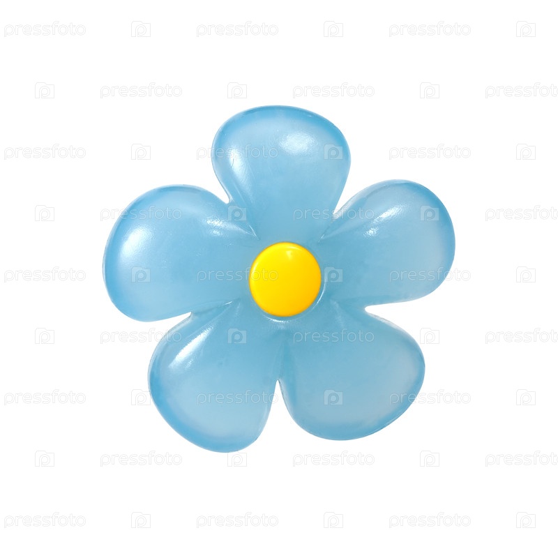 Синий пластиковый цветок выделен на белом фоне для концептуальных композиций