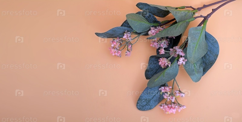 Цветящая ветвь изолирована на желтом фоне. розовый эвкалипт