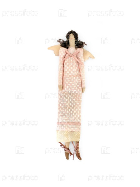 Ручно изготовленная текстильная игрушка 'Ангел' изолирована на белом фоне