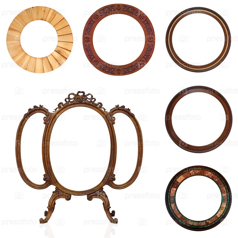 Набор деревянных рамок для картин, зеркал или фотографий, изолированных на белом фоне