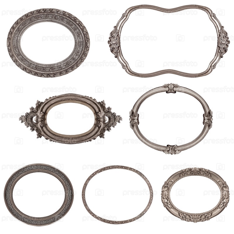 Набор серебряных рамок для картин, зеркал или фотографий, изолированных на белом фоне