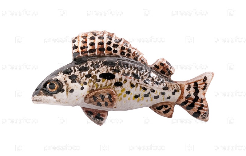 Керамическая рыба выделена на белом фоне. элемент дизайна с обрезкой маски