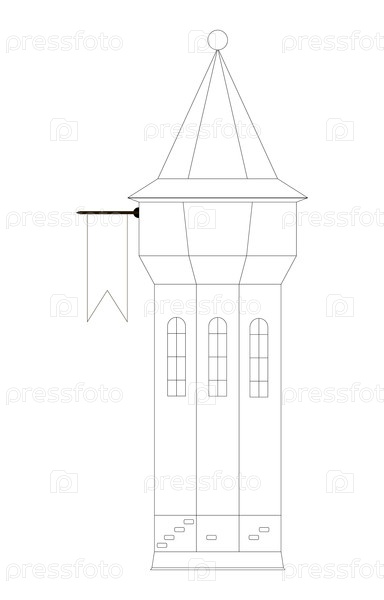 Черно-белая линия средневековой сторожевой башни изолирована на белом фоне, готовый вырез, вектор