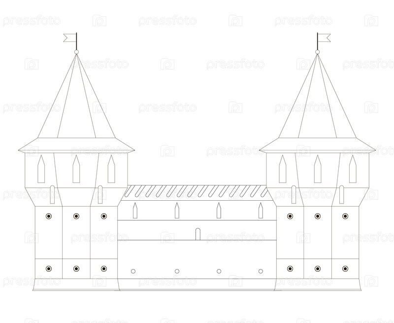 Черно-белая линия средневековой сторожевой башни изолирована на белом фоне, готовый вырез, вектор