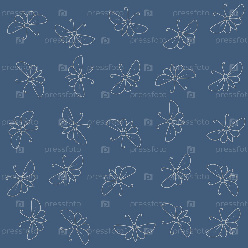 Бесшовный регулярный рисунок с бабочками на голубом небе